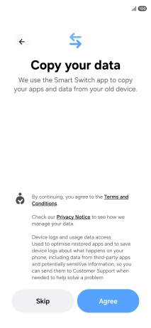 Press the required setting and follow the instructions on the screen to transfer the content from another phone.