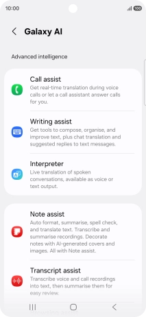 To use Galaxy AI to translate a conversation, slide your finger downwards starting from the top right side of the screen.