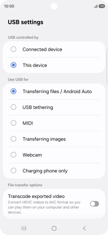 2. Choose setting for USB connection