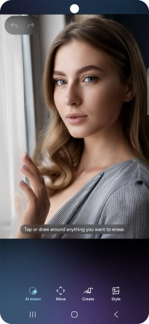 To remove objects from your picture, press AI eraser and follow the instructions on the screen to use the function.