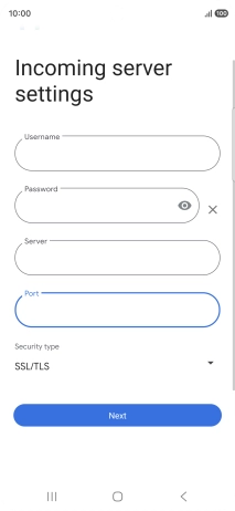 Press the field below "Server" and key in the name of your email provider's incoming server.