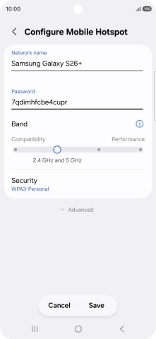 Press WPA3-Personal to password protect your Wi-Fi hotspot.
