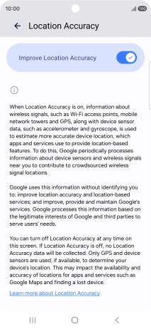If you press the indicator next to "Improve Location Accuracy" to turn off the function, your phone can find your exact position using the GPS satellites but it may take longer as there is no access to supplementary information from the mobile network or nearby Wi-Fi networks.