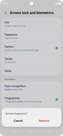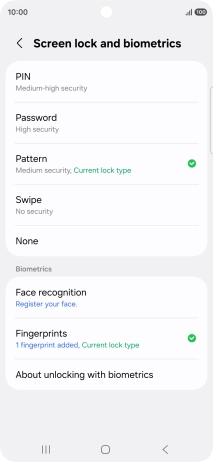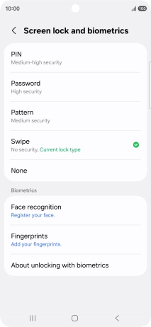 Press Screen lock and biometrics and key in the additional phone lock code you created earlier.