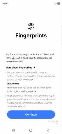 Follow the instructions on the screen to create the phone lock code using your fingerprint.