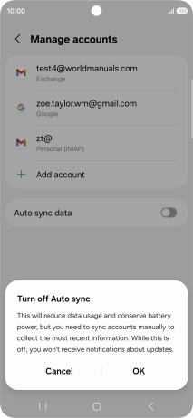 Press the indicator next to "Auto sync data" to turn the function on or off.