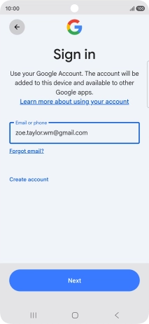If you don't have a Google account, press Create account and follow the instructions on the screen to create an account.