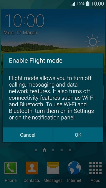 If flight mode is turned on, your phone's transmitting functions are turned off. This means that you can't access the internet using the mobile network or a Wi-Fi network.