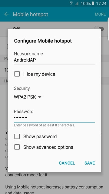 Press the indicator next to "Mobile hotspot" until the function is turned on.