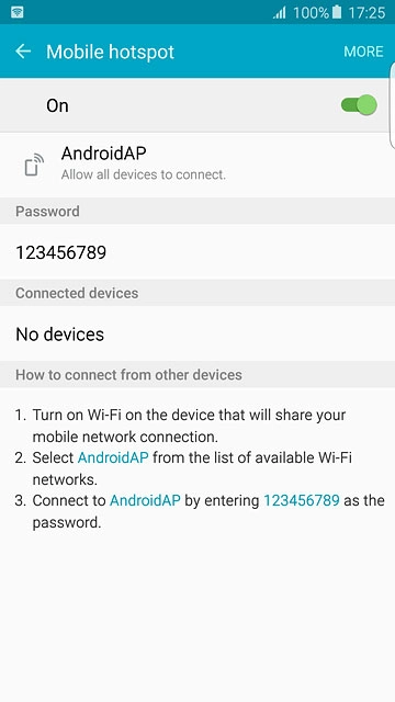 Key in the password you selected in step 2 and establish a connection to the Wi-Fi hotspot.