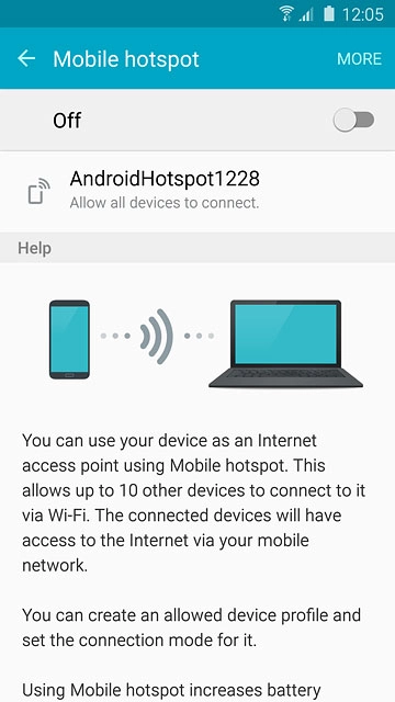 Turn on Wi-Fi hotspot