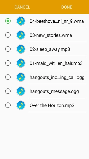 Press the required audio file.