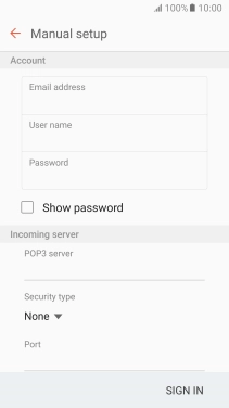 If this screen is displayed, you email account has been recognised and set up automatically. Follow the instructions on the screen to key in more information and finish setting up your phone.