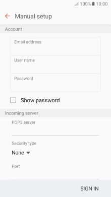 Press the field below "User name" and key in the username for your email account.