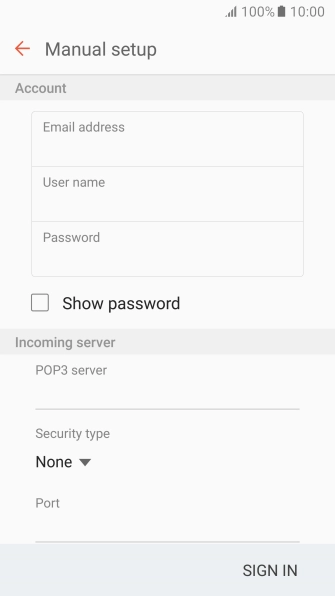 Press Password and key in the password for your email account.