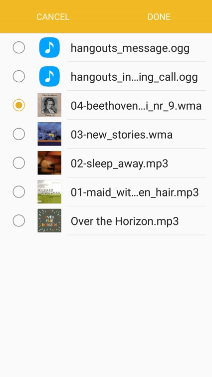 Press the required audio file.