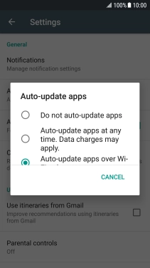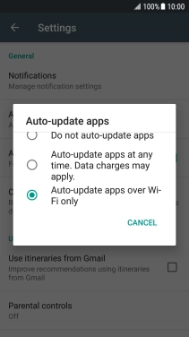 Press Auto-update apps over Wi-Fi only to turn on the function.