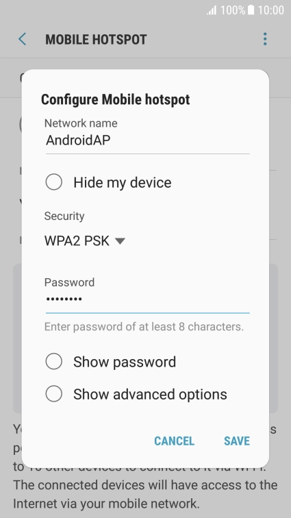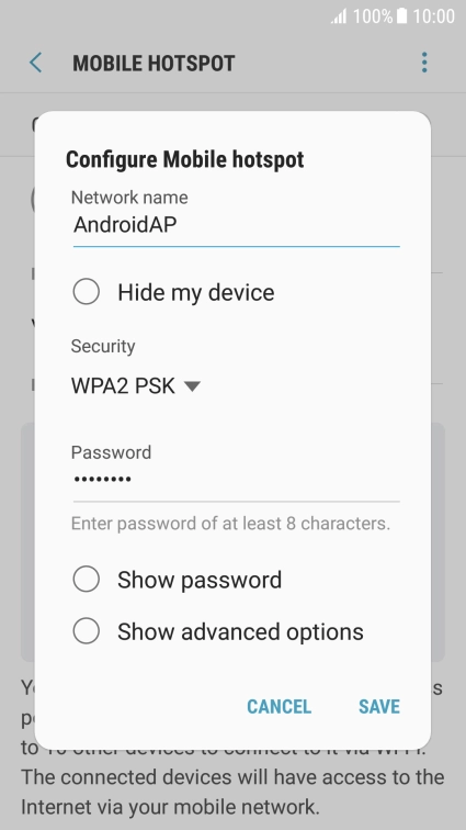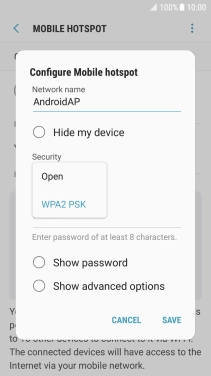 Press WPA2 PSK to password protect your Wi-Fi hotspot.