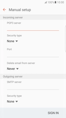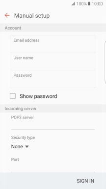 If this screen is displayed, you email account has been recognised and set up automatically. Follow the instructions on the screen to key in more information and finish setting up your phone.