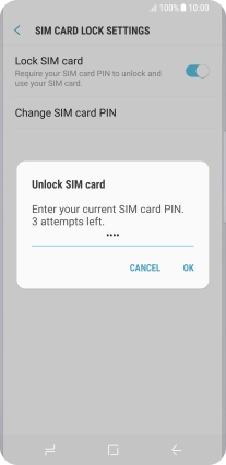 Press the indicator next to "Lock SIM card" to turn the function on or off.