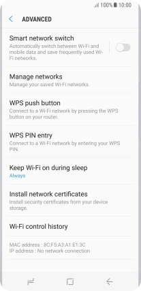 Press the indicator next to "Smart network switch" to turn the function on or off.