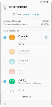 You can transfer the contents of another phone to your phone when it's activated for the first time and after a factory reset. When this screen is displayed, your phone is ready to transfer contents from another phone.