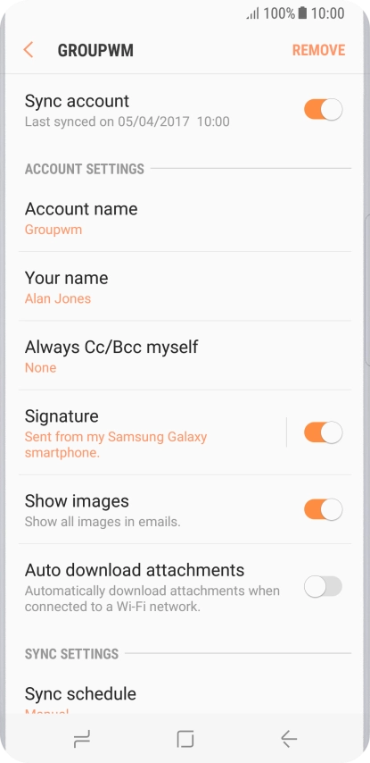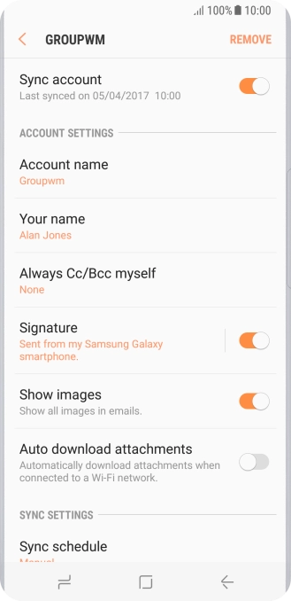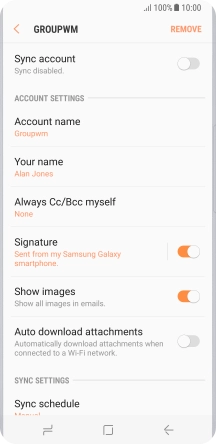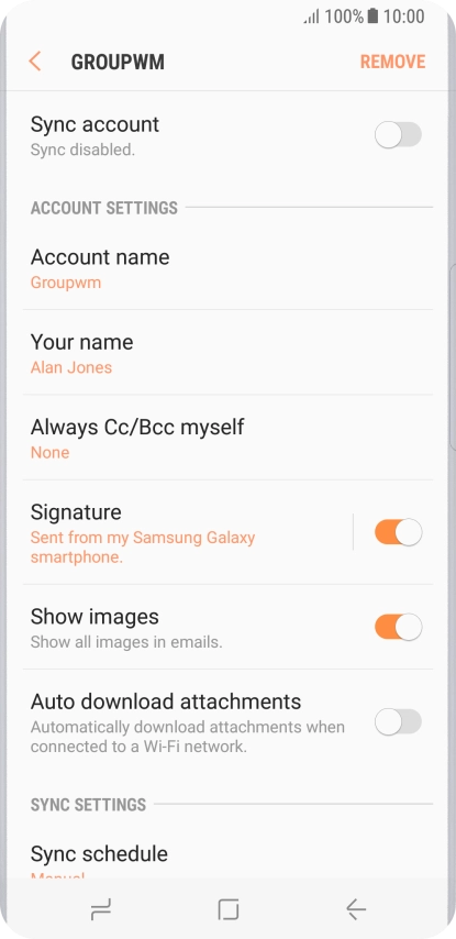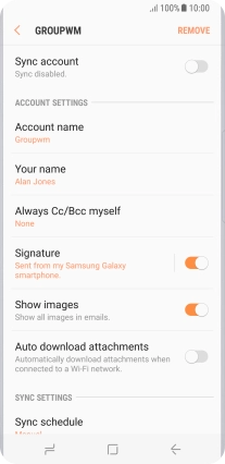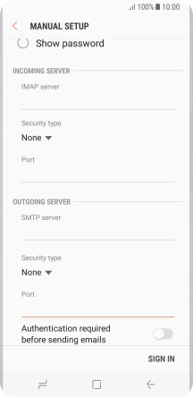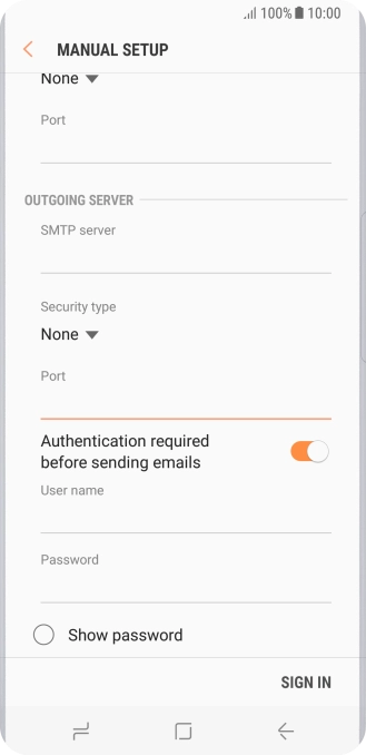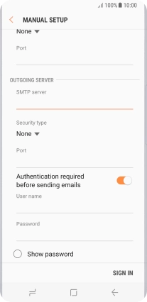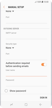 Press the indicator next to "Authentication required before sending emails" to turn the function on or off. Please note that if you're using Vodafone's outgoing server, turn off SMTP authentication and leave the username and password fields empty.