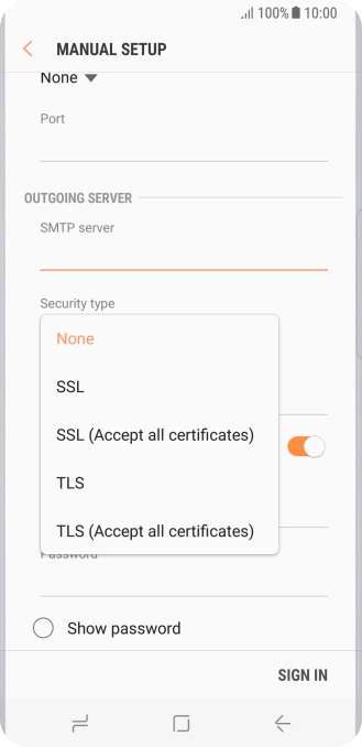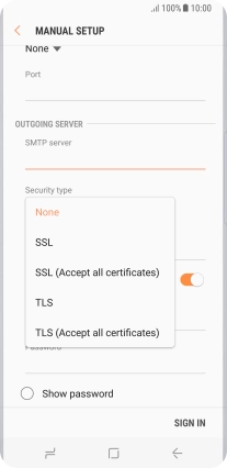 Press the field below "SMTP server" and key in the name of your email provider's outgoing server. Please note that if you can't send email messages when using your email provider's outgoing server, key in smtp.vodafone.net.au (Vodafone's outgoing server).