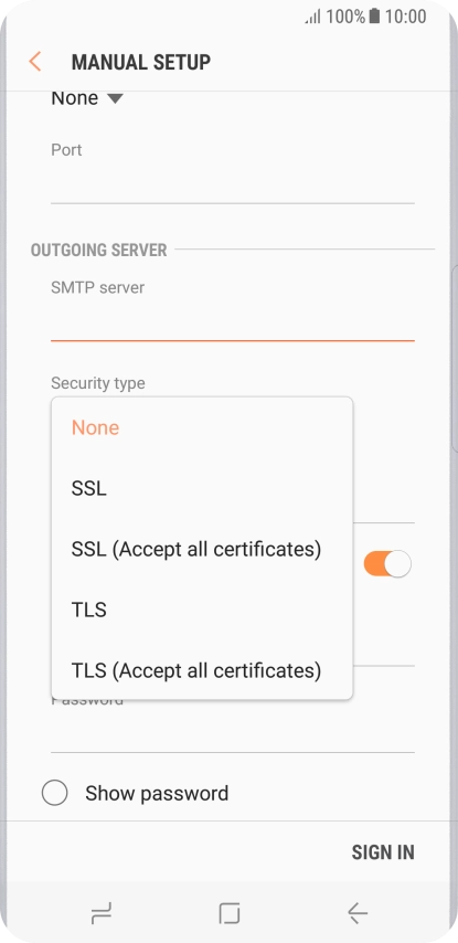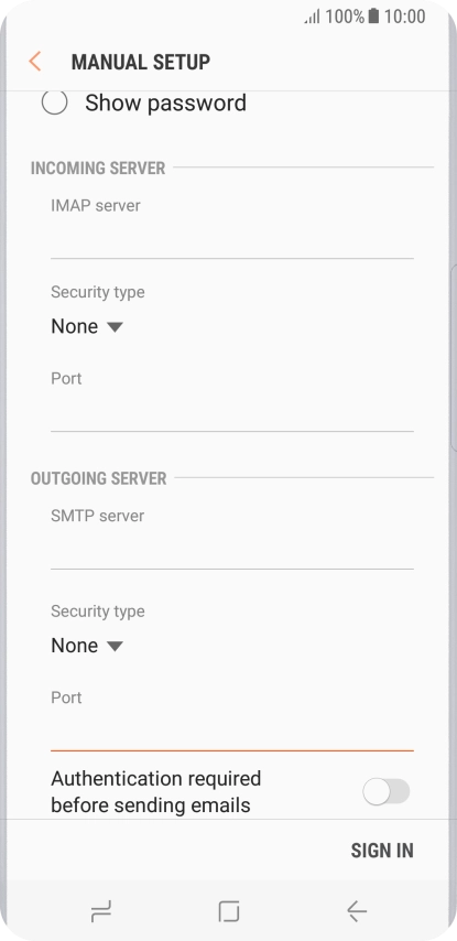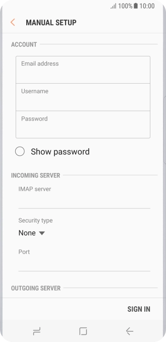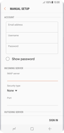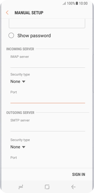 Press the field below "IMAP server" and key in the name of your email provider's incoming server.