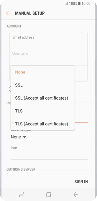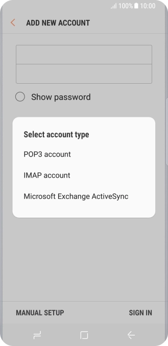 If this screen is displayed, you email account has been recognised and set up automatically. Follow the instructions on the screen to key in more information and finish setting up your phone.