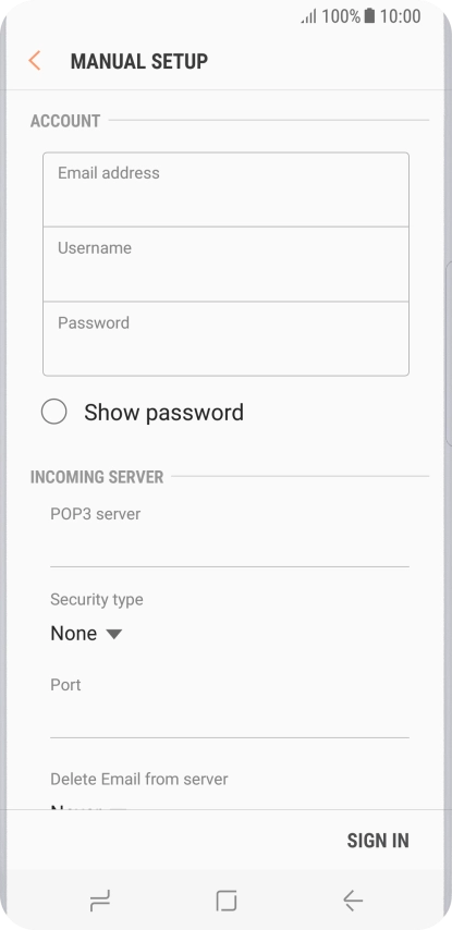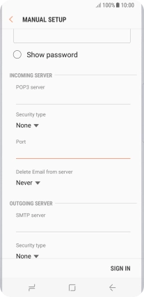 If this screen is displayed, you email account has been recognised and set up automatically. Follow the instructions on the screen to key in more information and finish setting up your phone.