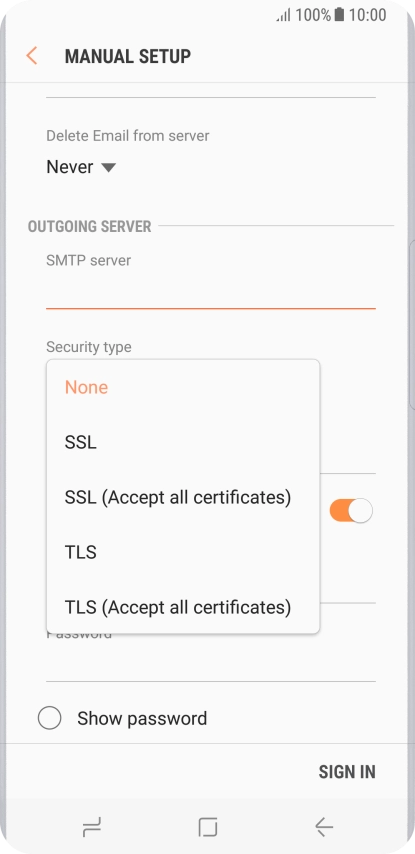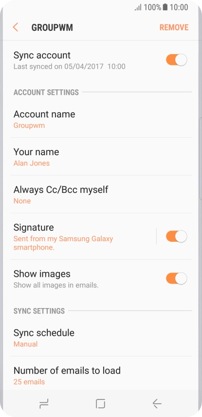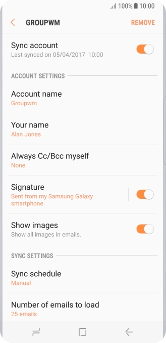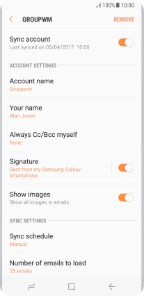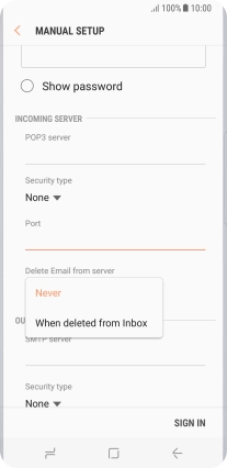 Press When deleted from Inbox to delete email messages on the server when you delete them on your phone.