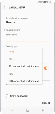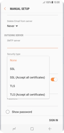 Press the field below "SMTP server" and key in the name or IP address of your email provider's outgoing server. Please note that if you can't send email messages when using your email provider's outgoing server, key in smtp.vodafone.net.au (Vodafone's outgoing server).
