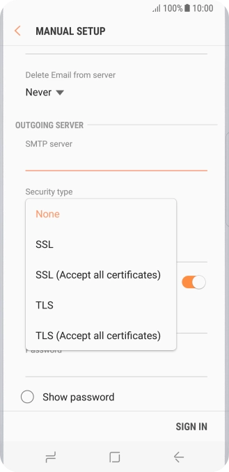 If you turn on SMTP authentication, press the field below "Password" and key in the password for your email provider's outgoing server.