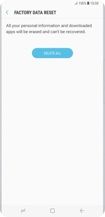 Press DELETE ALL. Wait a moment while the factory default settings are restored. Follow the instructions on the screen to set up your phone and prepare it for use.