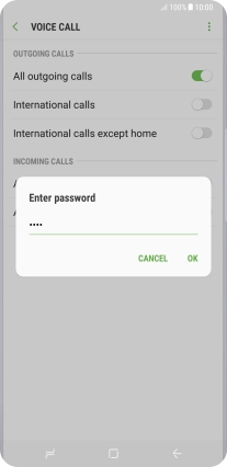 Key in your barring password and press OK. The default barring password is 0000.