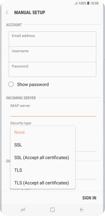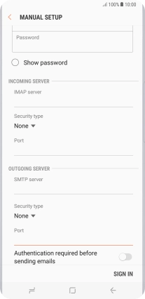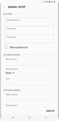 Press the field below "IMAP server" and key in the name of your email provider's incoming server.
