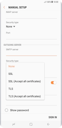 Press the field below "Password" and key in the password of your email provider's outgoing server.