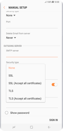 Press the field below "Password" and key in the password of your email provider's outgoing server.