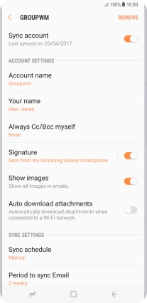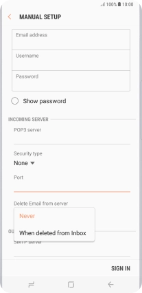Press When deleted from Inbox to delete email messages on the server when you delete them on your phone.