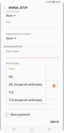 Press the field below "Password" and key in the password of your email provider's outgoing server.