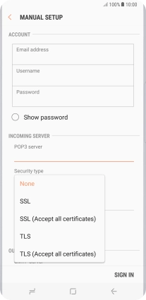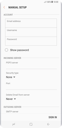 If this screen is displayed, you email account has been recognised and set up automatically. Follow the instructions on the screen to key in more information and finish setting up your phone.