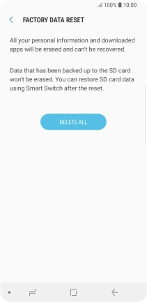 Press DELETE ALL. Wait a moment while the factory default settings are restored. Follow the instructions on the screen to set up your phone and prepare it for use.
