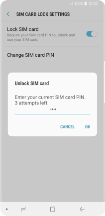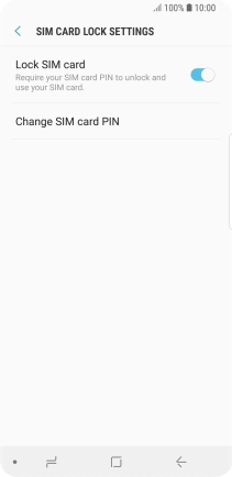 Press the indicator next to "Lock SIM card" to turn the function on or off.