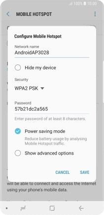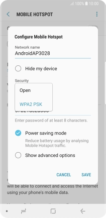 Press WPA2 PSK to password protect your Wi-Fi hotspot.