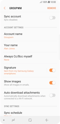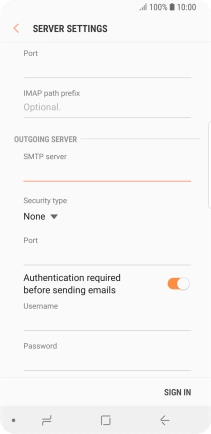 Press the indicator next to "Authentication required before sending emails" to turn the function on or off. Please note that if you're using Vodafone's outgoing server, turn off SMTP authentication and leave the username and password fields empty.