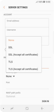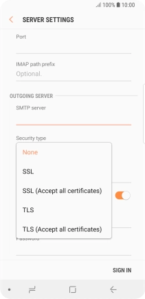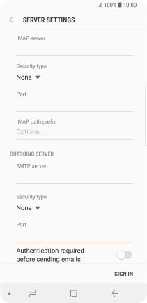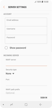 Press the field below "IMAP server" and key in the name of your email provider's incoming server.