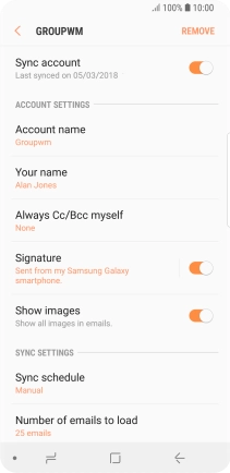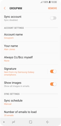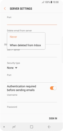 Press When deleted from Inbox to delete email messages on the server when you delete them on your phone.