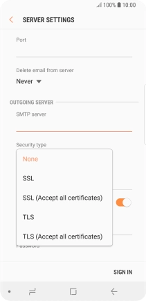 Press the field below "SMTP server" and key in the name or IP address of your email provider's outgoing server. Please note that if you can't send email messages when using your email provider's outgoing server, key in smtp.vodafone.net.au (Vodafone's outgoing server).