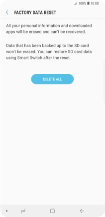 Press DELETE ALL. Wait a moment while the factory default settings are restored. Follow the instructions on the screen to set up your phone and prepare it for use.
